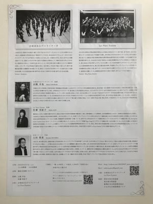 合唱団お江戸コラリアーずからは、信長貴富作曲「ぼくの村は戦場だった男声版委嘱作品》を、鈴木作品のレコーディングを控えているLa Pura Fuenteからは、鈴木輝昭作曲「赤き花の魔睡」「絵師よ」をお送りします。