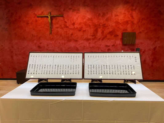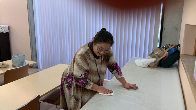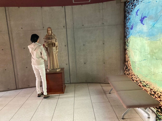 館内の床や机、マリア様の像やSr.ラマリョ(清泉女学院の初代校長)の額も綺麗にいたしました。