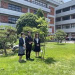 雪ノ下教会の上杉神父様による全校ミサが執り行われ、昨年末に記念植樹した2本の桜の木を祝福していただきました。