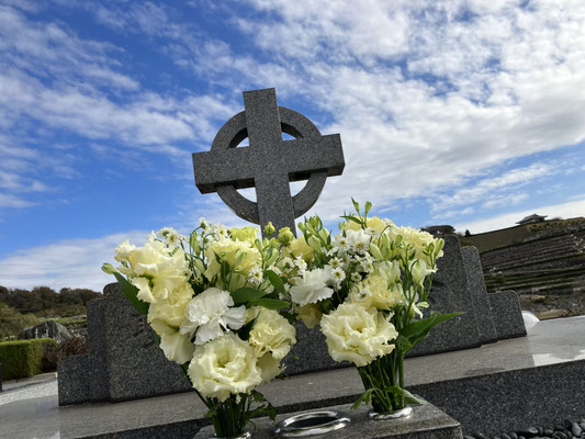 素晴らしく晴れた秋の日、カトリックの死者の月にちなみ役員有志でお墓参りをし、お花とお祈りをお捧げしました。